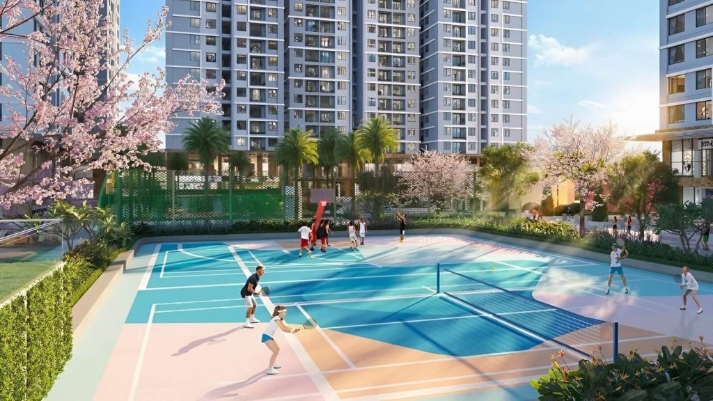 Trung tâm thương mại tại khối đế (tầng 1-3) sôi động với siêu thị, cửa hàng tiện ích, café, nhà hàng và shophouse, đáp ứng nhu cầu mua sắm, ăn uống, giải trí ngay ngưỡng cửa mà không cần di chuyển xa. Công viên nội khu rộng lớn, vườn dạo bộ, đường chạy bộ và khuôn viên cây xanh bao phủ, mang đến không khí trong lành, giảm ô nhiễm – đặc trưng của phong cách sống xanh Singapore.